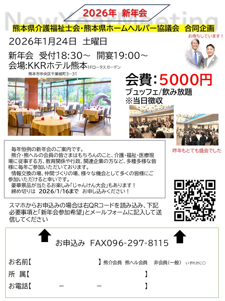 熊本県ホームヘルパー協議会・熊本県介護福祉士会合同研修 開催のお知らせ