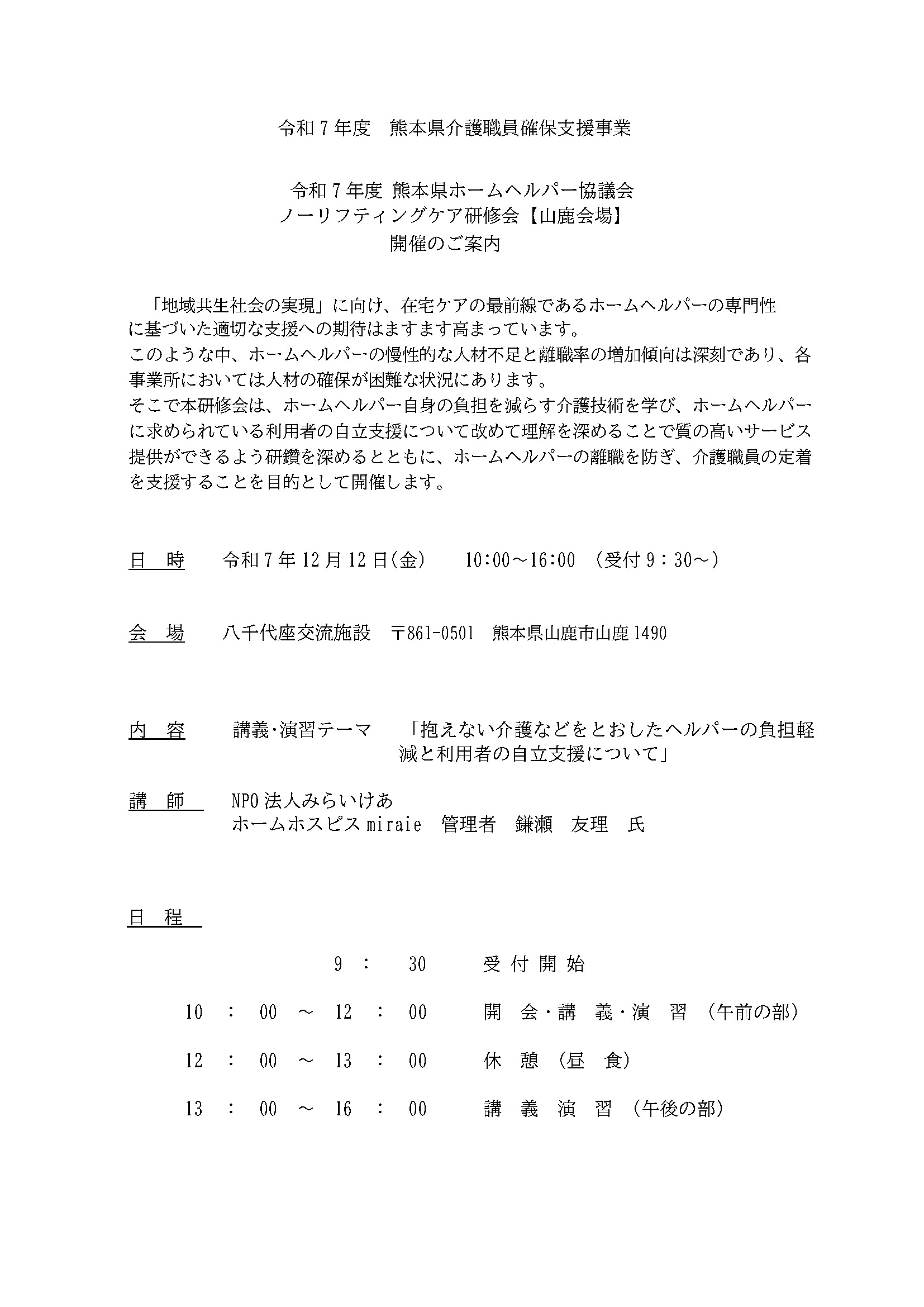 令和7年12月12日(金) ノーリフト研修会(山鹿市)のお知らせ