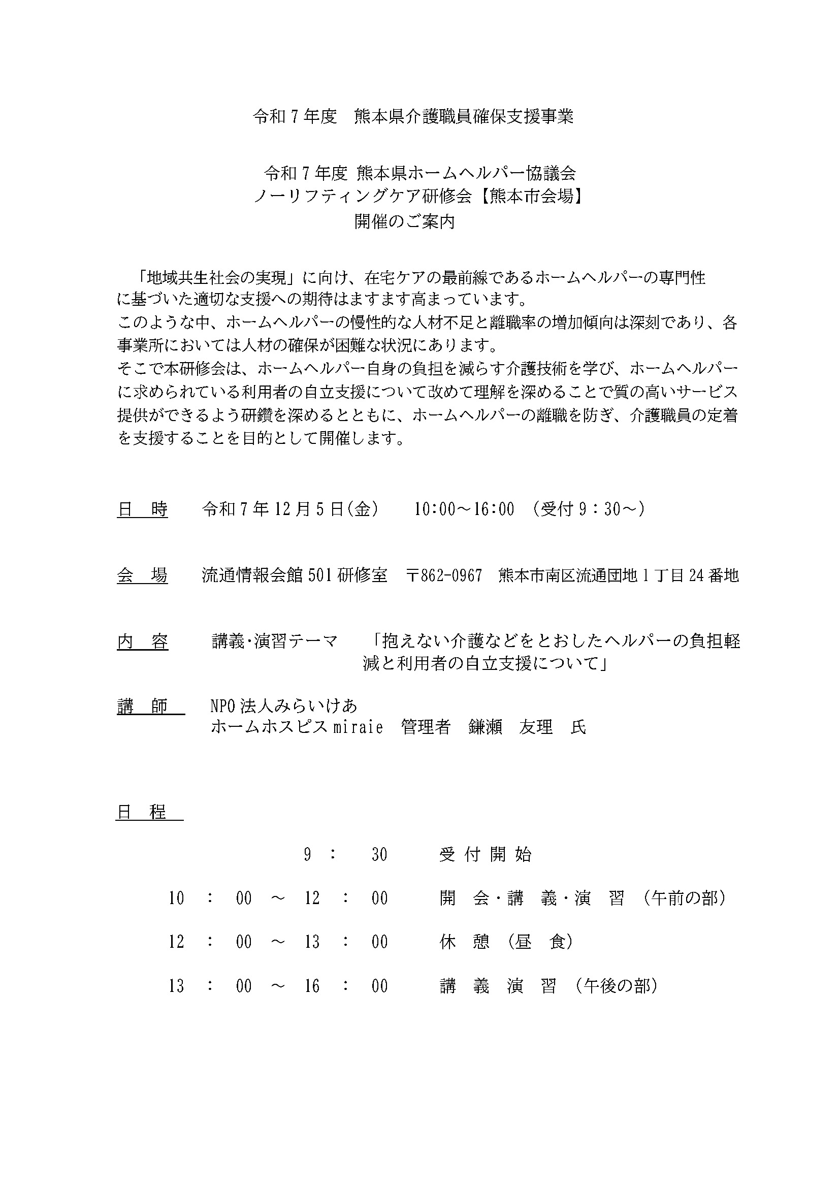 令和7年12月5日(金) ノーリフト研修会開催(熊本市)のお知らせ