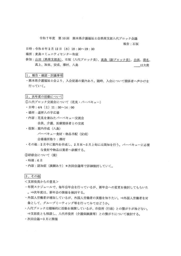 令和7年度 第10回 熊本県介護福祉士会県南支部八代ブロック会議
