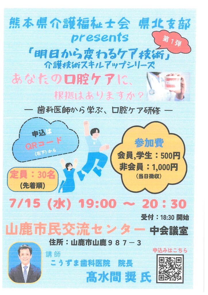 県北支部 介護技術スキルアップシリーズ第1弾「口腔衛生」研修のご案内