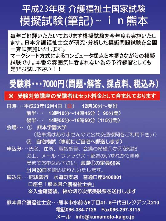 平成23年度 介護福祉士会国家試験模擬試験(筆記)in熊本