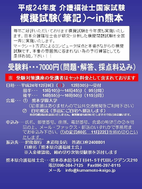 12/9 (日)13~ 介護福祉士全国模擬試験 熊本学園大学