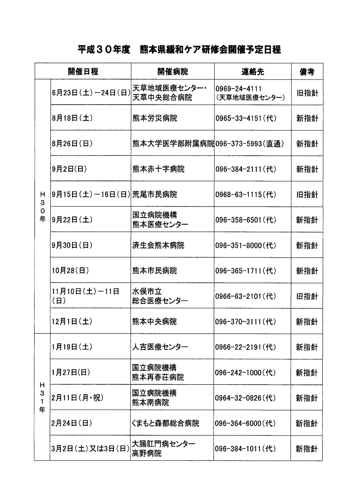 平成30年度 熊本県緩和ケア研修会開催予定日程のお知らせ