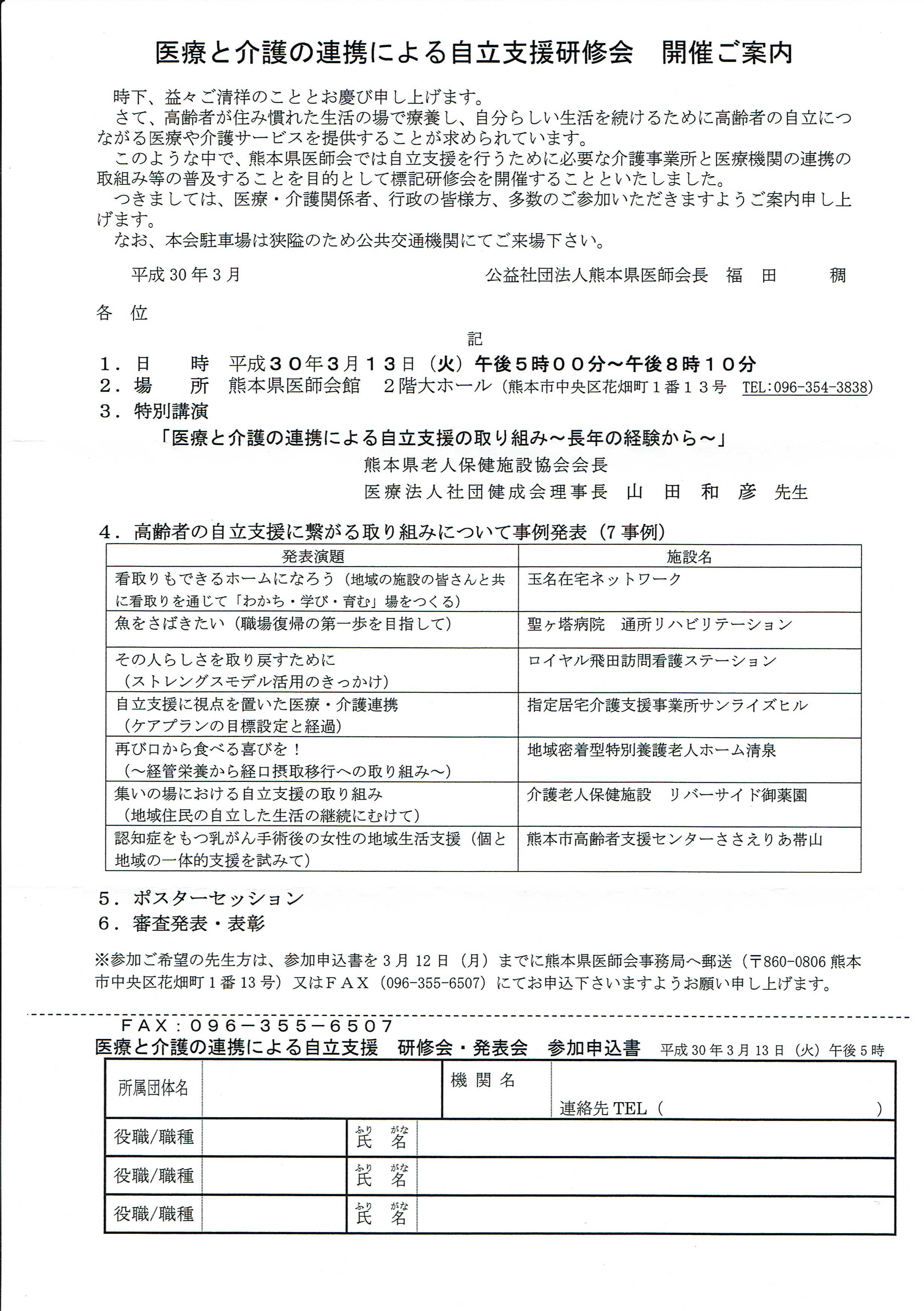 介護過程の展開力を培う研修会講師養成研修会について、東会場と西会場のご案内 2018年4月19日 Category - 研修会 ▼ クリックで要項をダウンロードできます(PDF/全10ページ) ▼ 申し込み用紙のダウンロードはこちらから 人吉・球磨ブロック研修のご案内 2018年3月26日 Category - 研修会 ▼ クリックで要項をダウンロードできます(PDF/全2ページ) ▼ 申し込み用紙のダウンロードはこちらから 県南支部総会のご案内 2018年3月15日 Category - 研修会 ▼ クリックで要項をダウンロードできます(PDF/全1ページ) ▼ 申し込み用紙のダウンロードはこちらから 医療と介護の連携による自立支援研修会 開催ご案内 2018年3月8日 Category - 研修会 ▼ クリックで要項をダウンロードできます(PDF/全1ページ) ▼ 申し込み用紙のダウンロードはこちらから 介護福祉士基本研修のご案内 2018年2月28日 Category - 研修会 ▼ クリックで要項をダウンロードできます(PDF/全3ページ) ▼ 申し込み用紙のダウンロードはこちらから 熊本地震への支援を考える 研修会のご案内 2018年2月14日 Category - 研修会 ▼ クリックで要項をダウンロードできます(PDF/全2ページ) ▼ 申し込み用紙のダウンロードはこちらから 介護の日inくまもと2017地域イベント 研修会のお知らせ 2018年2月5日 Category - 研修会 ▼ クリックで要項をダウンロードできます(PDF/全2ページ) ▼ 申し込み用紙のダウンロードはこちらから スキルアップ研修会のご案内 〜研究基礎の「き」〜 2018年1月31日 Category - 研修会 ▼ クリックで要項をダウンロードできます(PDF/全2ページ) ▼ 申し込み用紙のダウンロードはこちらから ケアマネ協会研修のご案内 2017年12月26日 Category - 研修会 ▼ クリックで要項をダウンロードできます(PDF/全3ページ) ▼ 申し込み用紙のダウンロードはこちらから 県南支部 人吉・球磨研修のお知らせ 2017年12月21日 Category - 研修会 ▼ クリックで要項をダウンロードできます(PDF/全2ページ) ▼ 申し込み用紙のダウンロードはこちらから ≪ PREV NEXT ≫